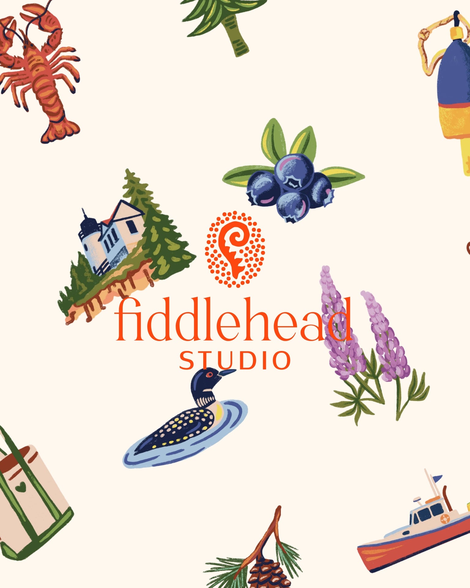 This print is my love letter to one of my favorite places in the world! It’s hand-illustrated by me and features illustrations of a lobster boat, the Bass Harbor Head Light, lupine, LLBean classics, a lobster, blueberries, and more Maine favorites.