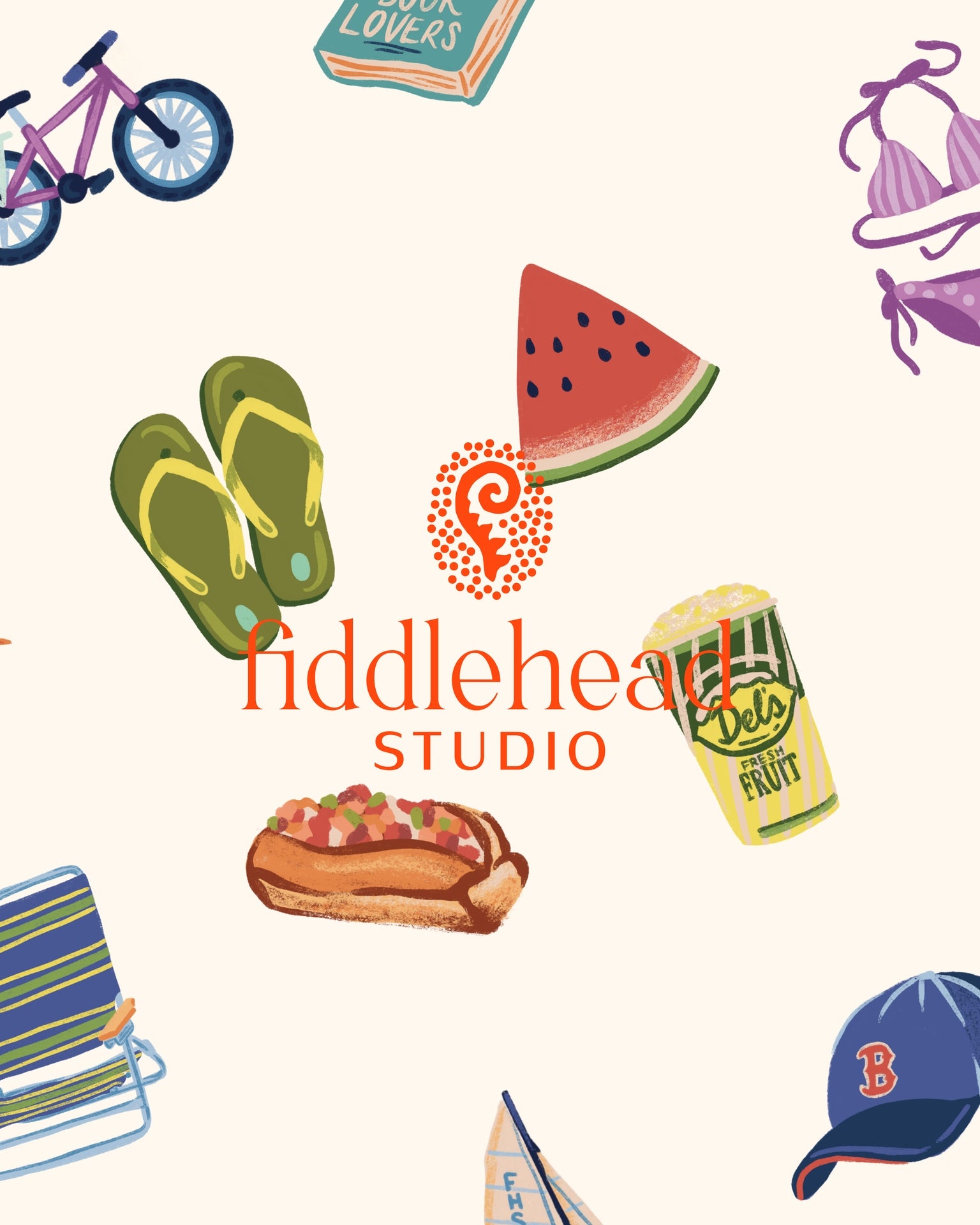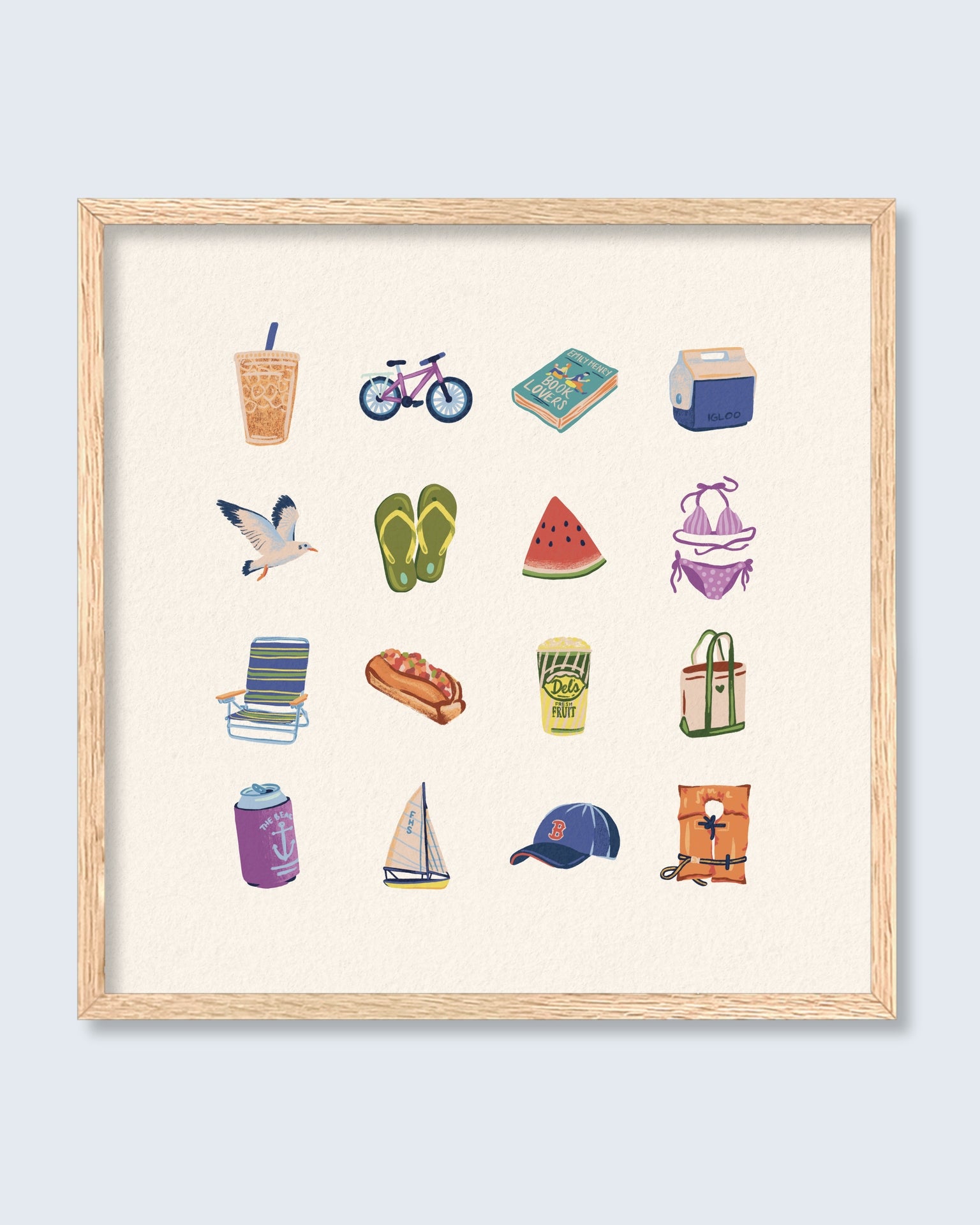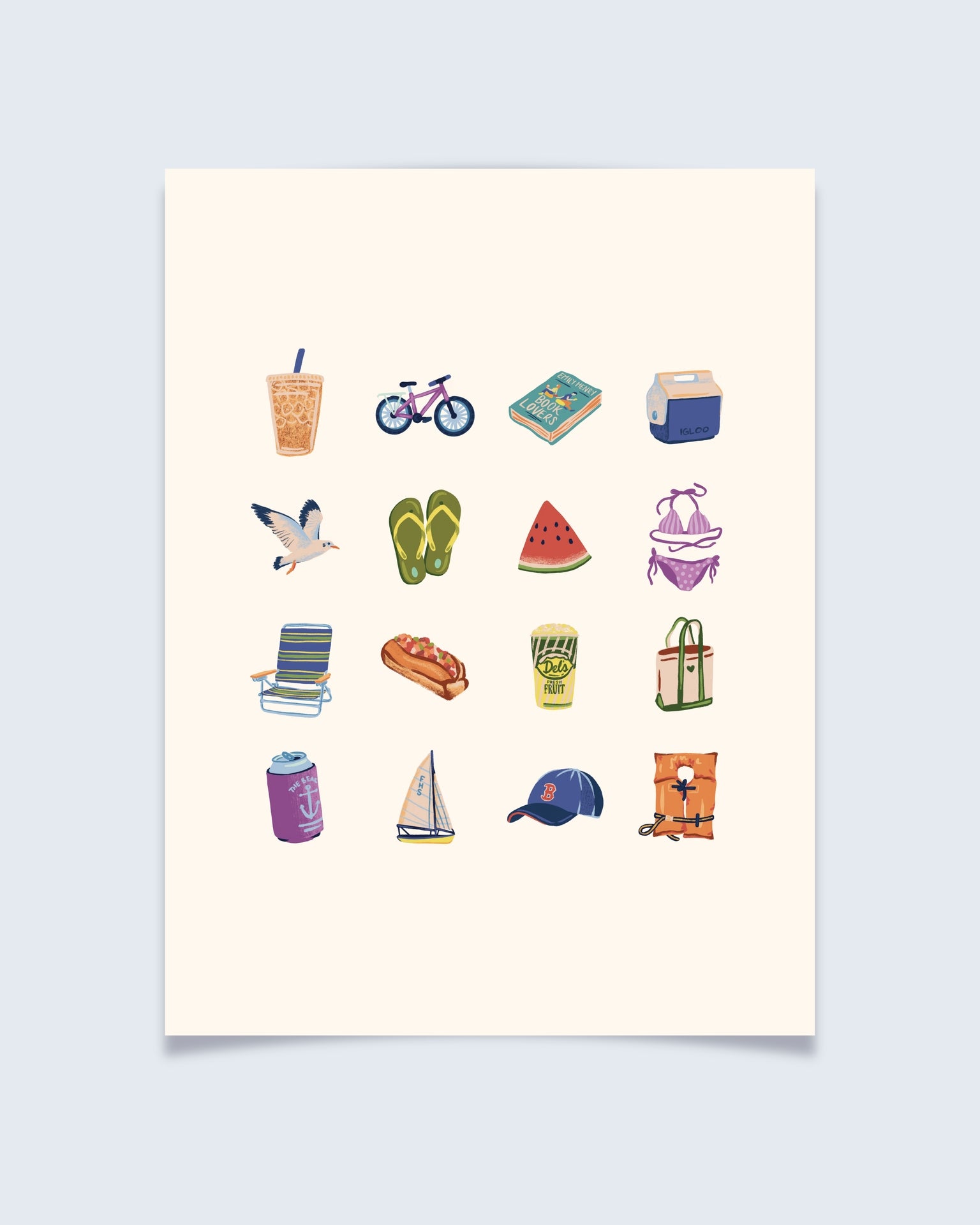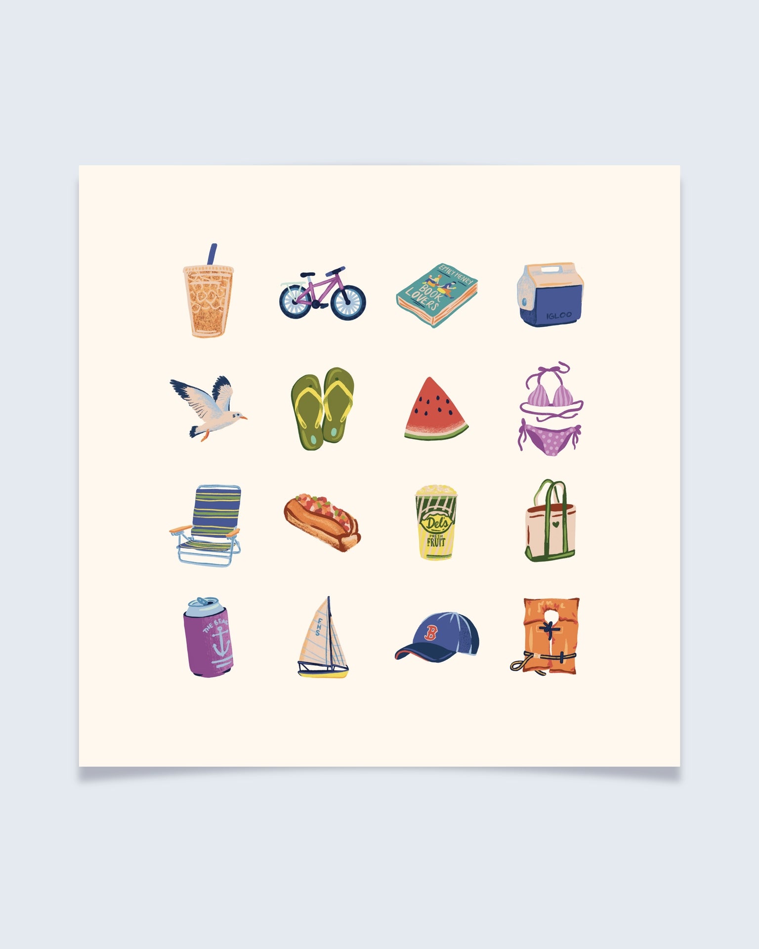 Each drawing is a love note to New England Summer days - beach chairs, lobster rolls, Del’s lemonade, and everything that makes summer in New England unforgettable.