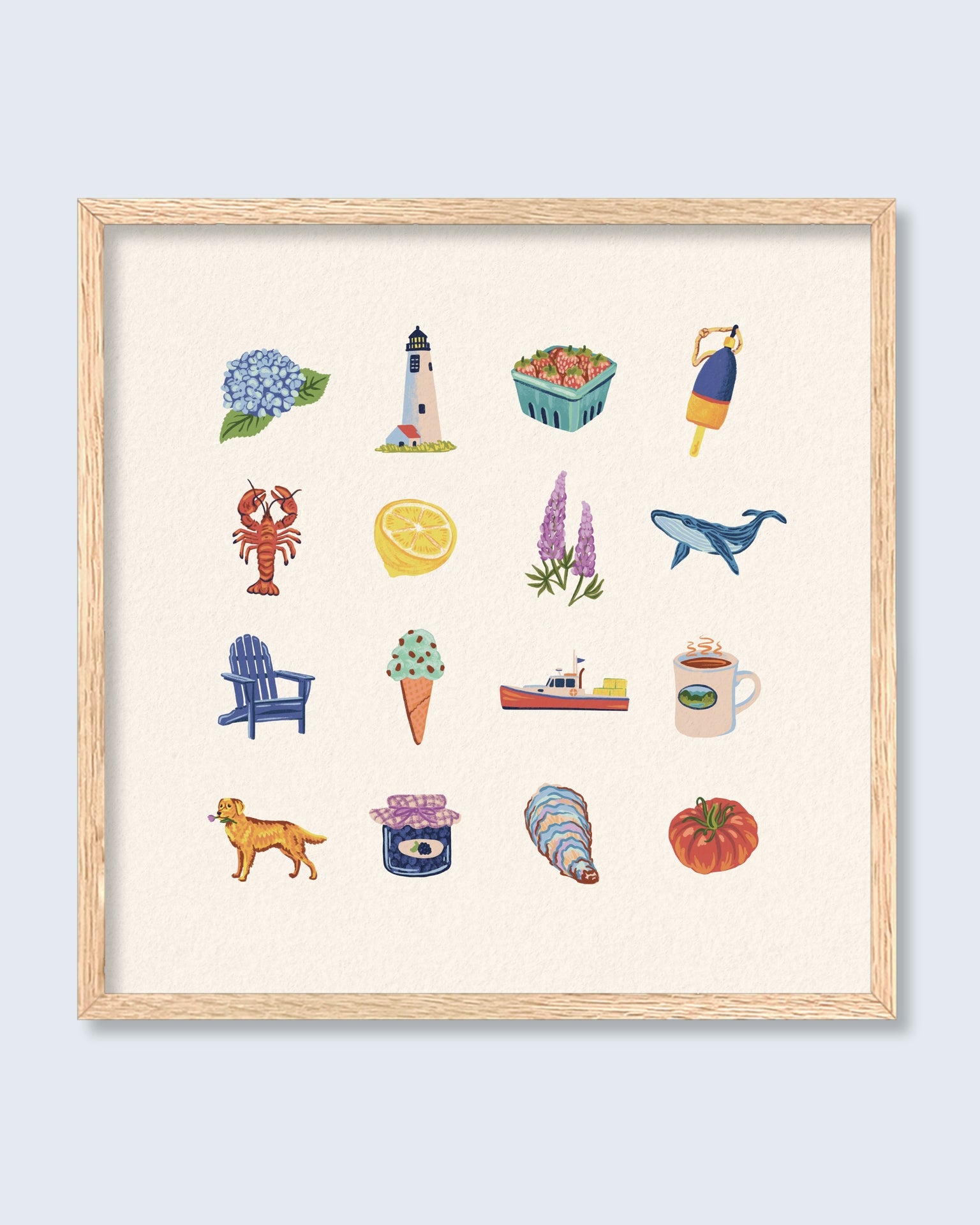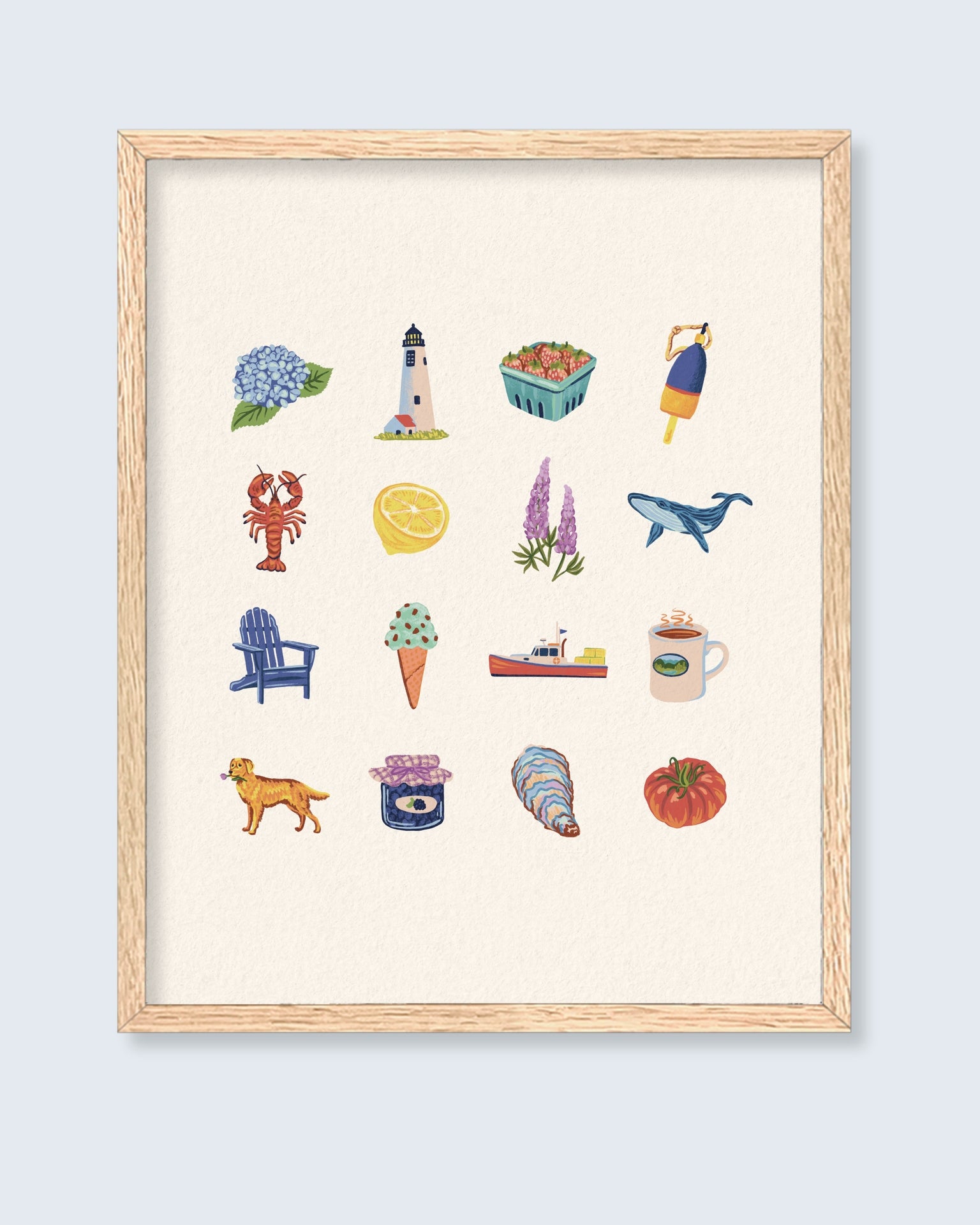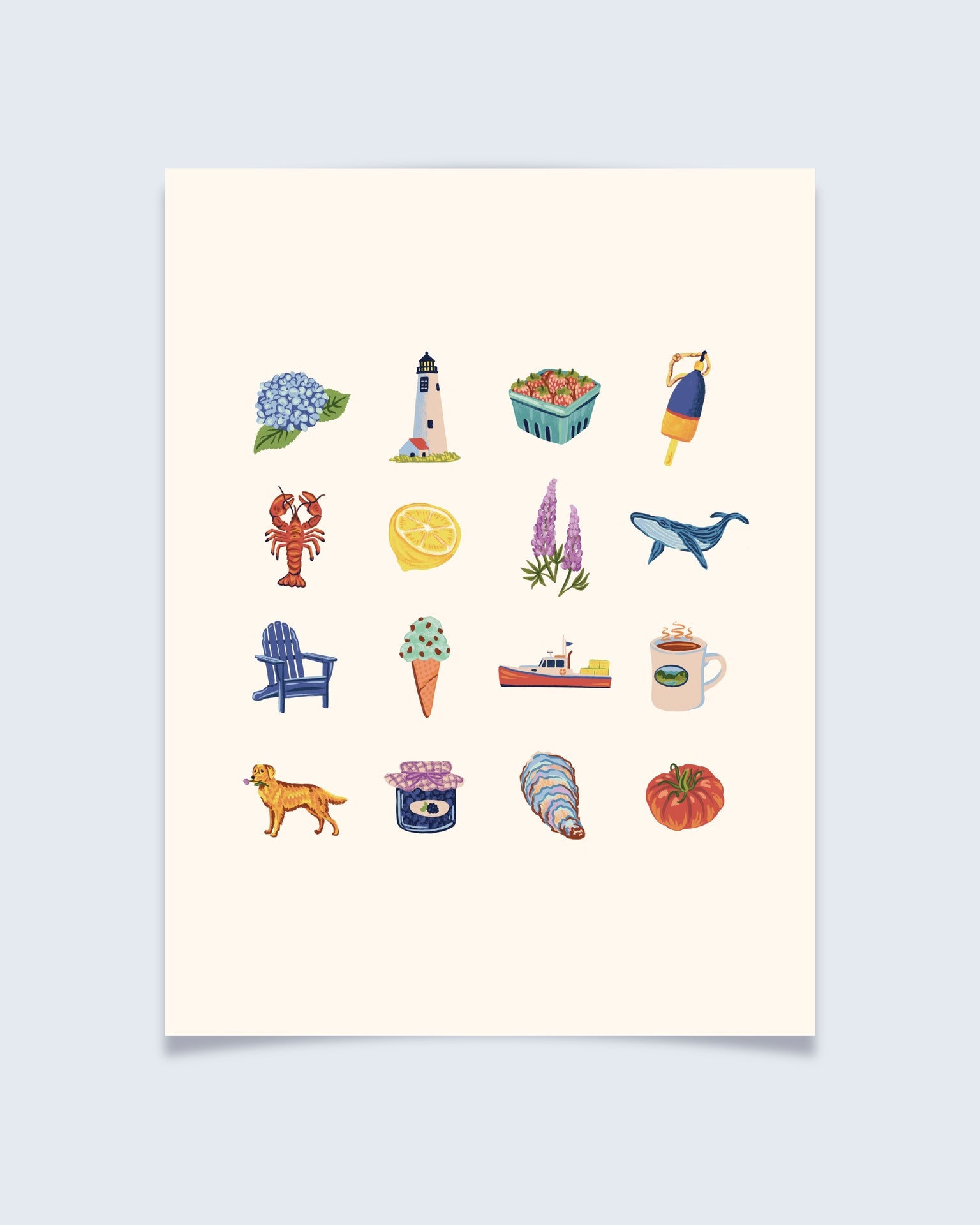 Perfect for brightening up a kitchen, entryway, or beach house, this print adds a touch of warmth and nostalgia wherever it hangs. Pair it with Field Notes or Day on the Water to complete the New England Charms collection. The perfect set to hang over your couch or bed!